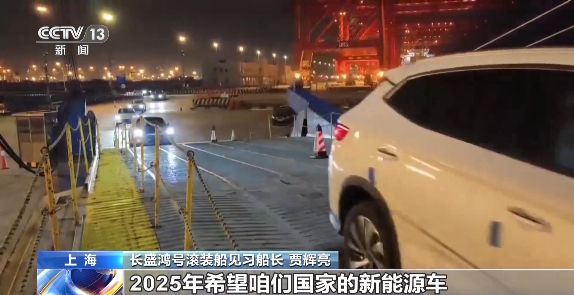 长盛鸿号滚装船见习船长 贾辉亮:这些车从上海港装港,到东南亚卸货,2025年希望咱们国家的新能源车出口量更上一层楼。