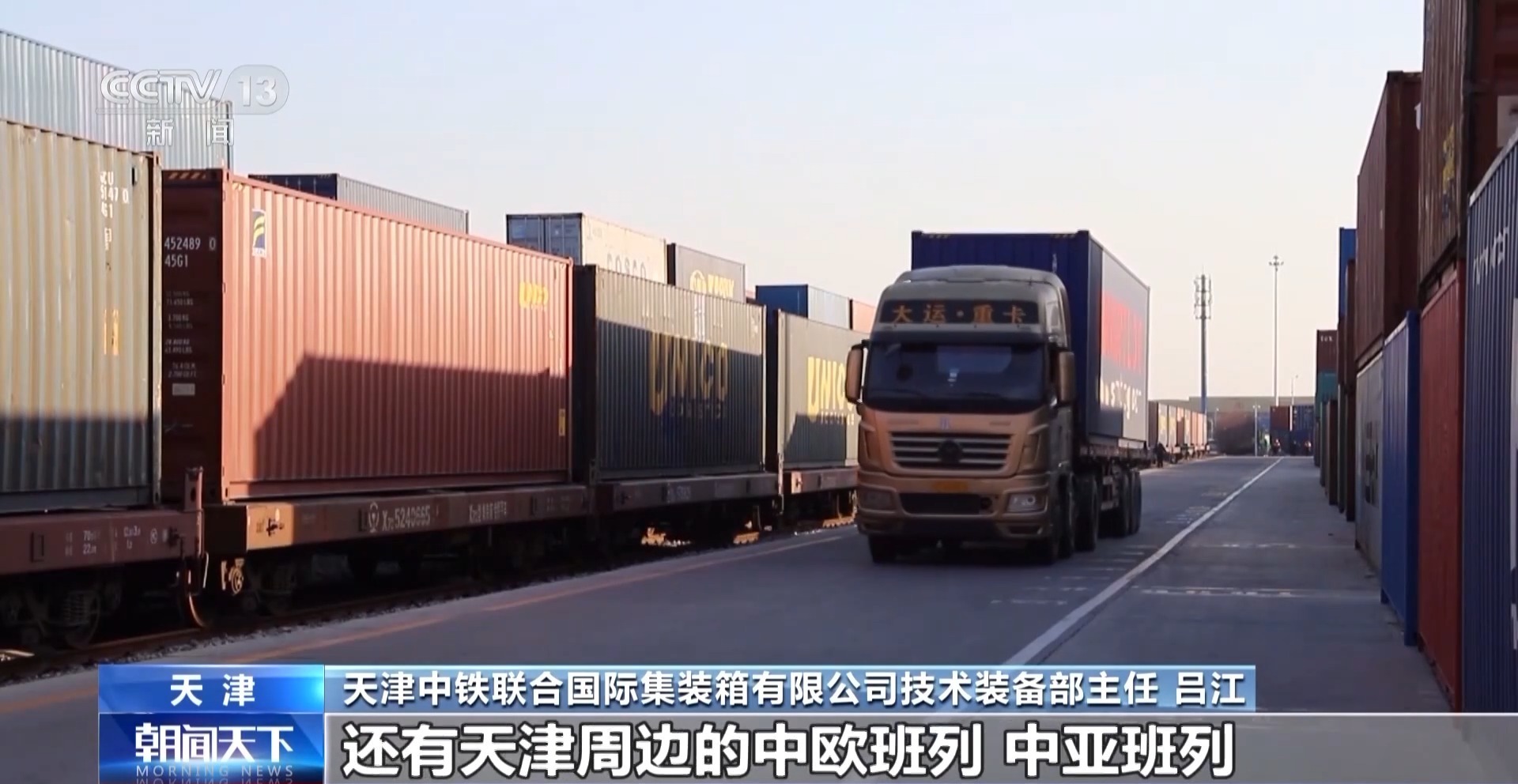 天津中铁联合国际集装箱有限公司技术装备部主任 吕江:建成以后,我们能更好地服务于各生产企业,还有天津周边的中欧班列、中亚班列。