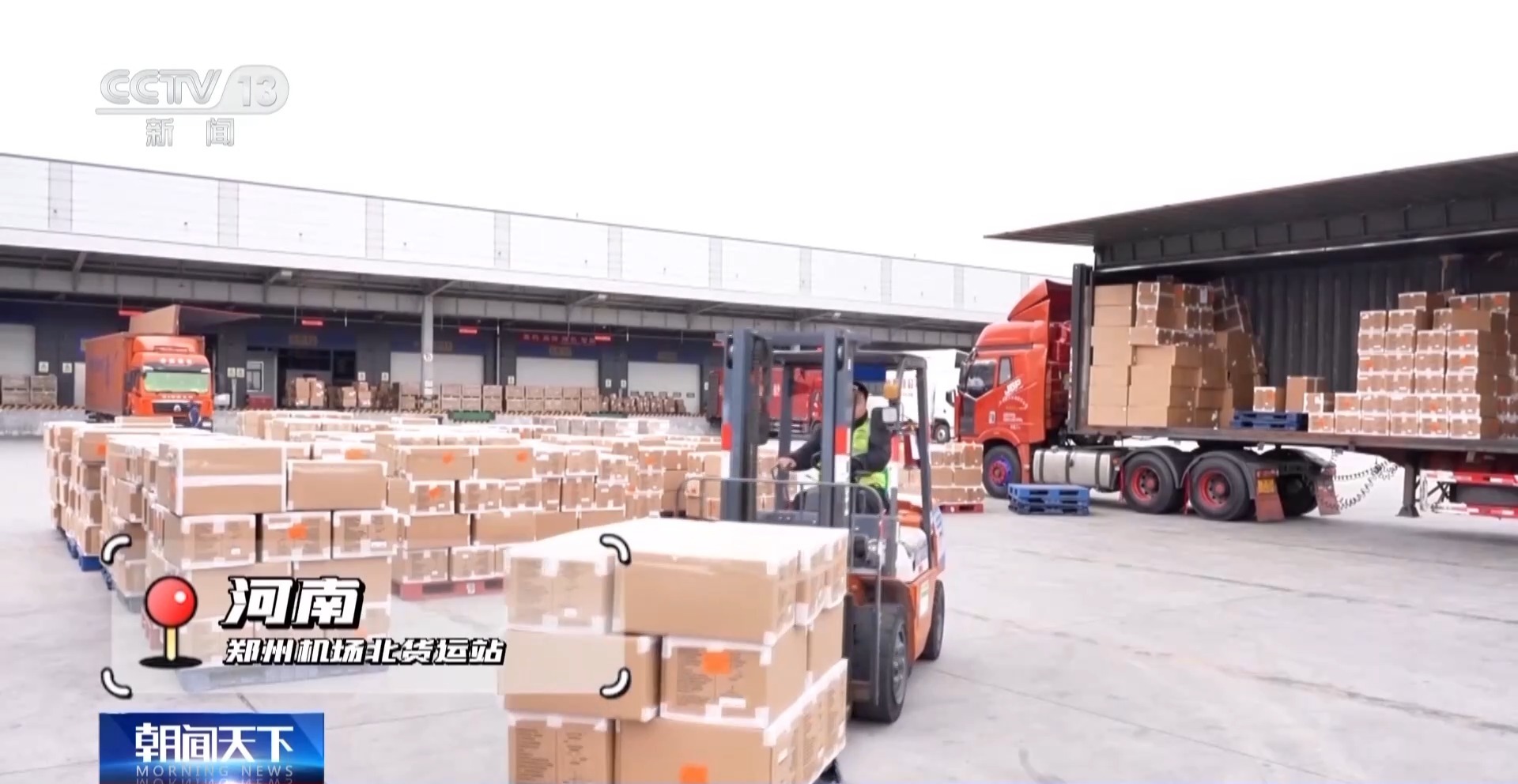 河南航空货运发展有限公司国际业务部出发仓管 邢亚栋:新年以来货量急剧猛增,之前的5台安检机已经不能满足需求,今年我们已增开至7台,24小时不间断入货。2024年我们的货量已经突破了80万吨,2025年希望我们突破100万吨。