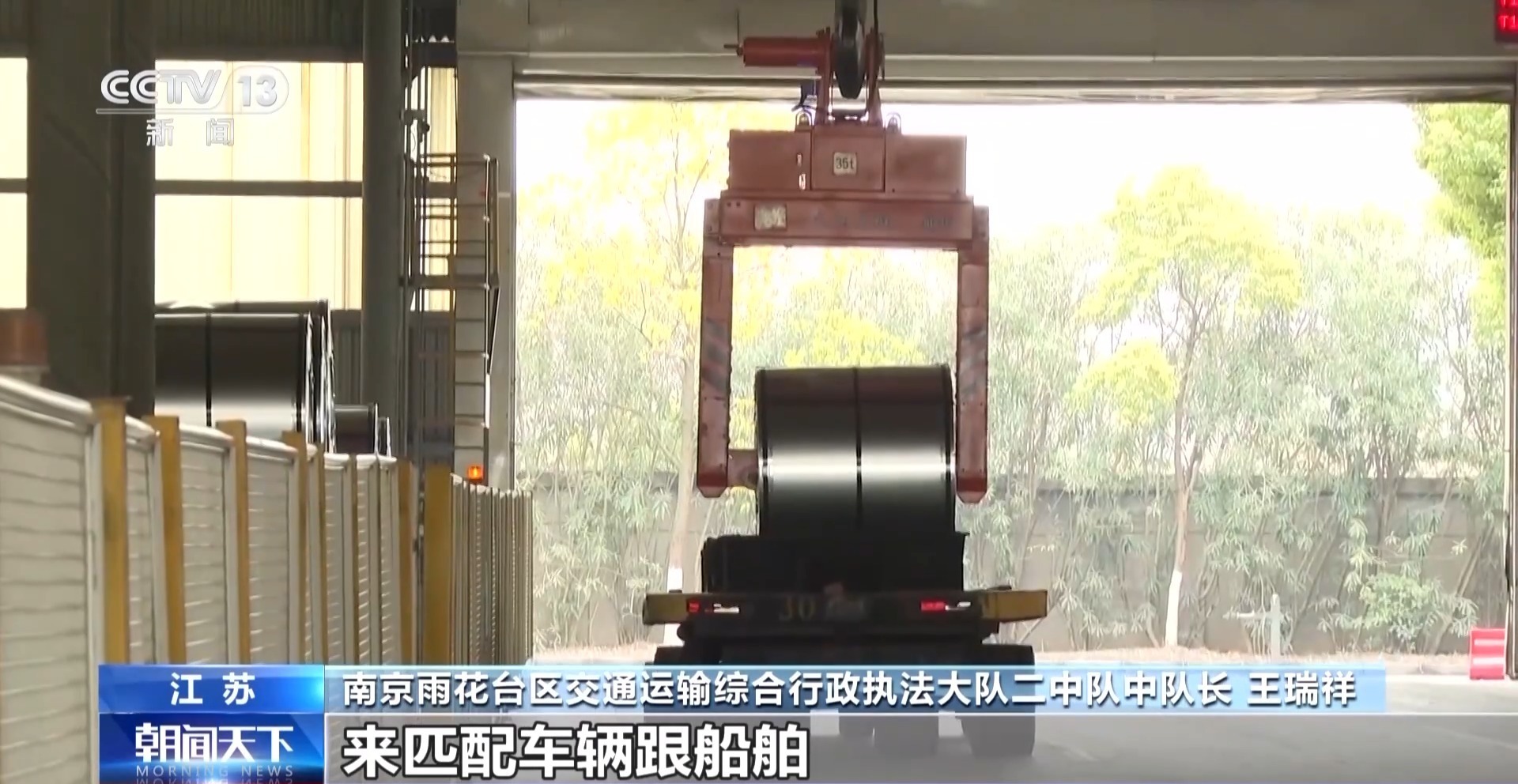 南京雨花台区交通运输综合行政执法大队二中队中队长 王瑞祥:平台企业可以根据客户的需要来匹配车辆跟船舶,运用数字赋能的手段,把这些费用降低下来,达成降本增效的目的。