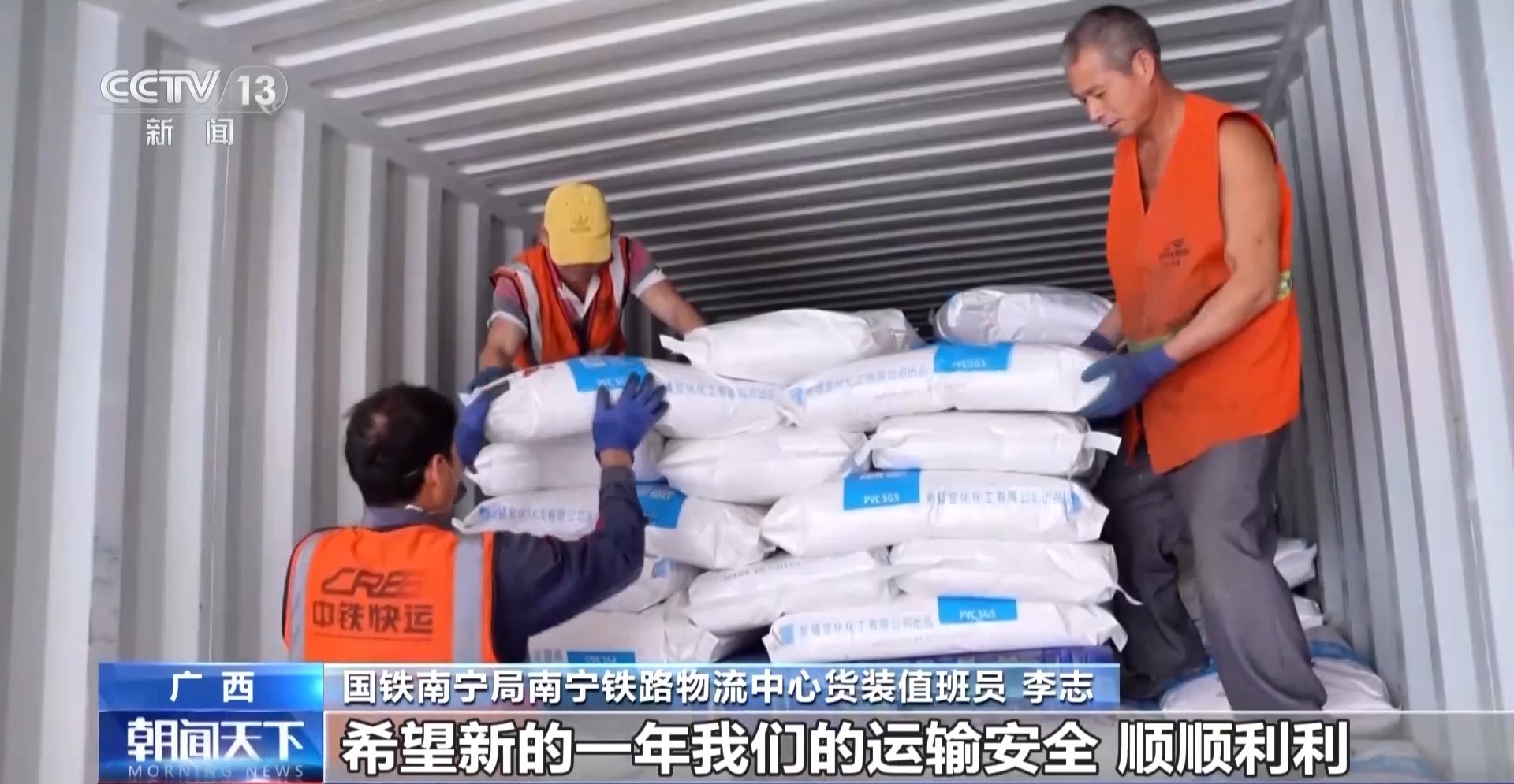 国铁南宁局南宁铁路物流中心货装值班员 李志:繁忙也是好事,希望新的一年我们的运输安全,顺顺利利,运量得到稳步提升。