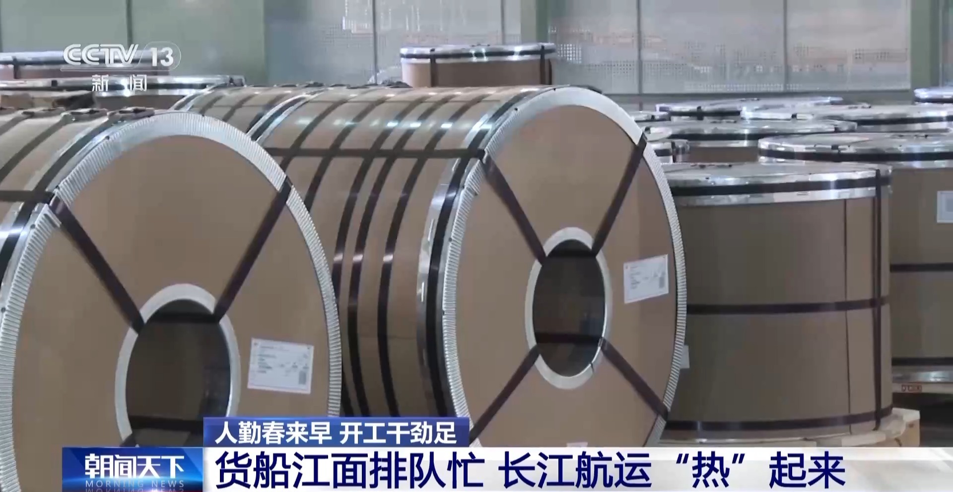 开年干劲足,这想挣钱的底气来自节后火热的市场行情。随着上海、浙江等地制造业企业节后陆续开工,钢卷需求激增,也直接带动运输成本更低的水路货运变得活跃起来。老船民们从成品码头拉的货,全是附近钢厂的钢卷。