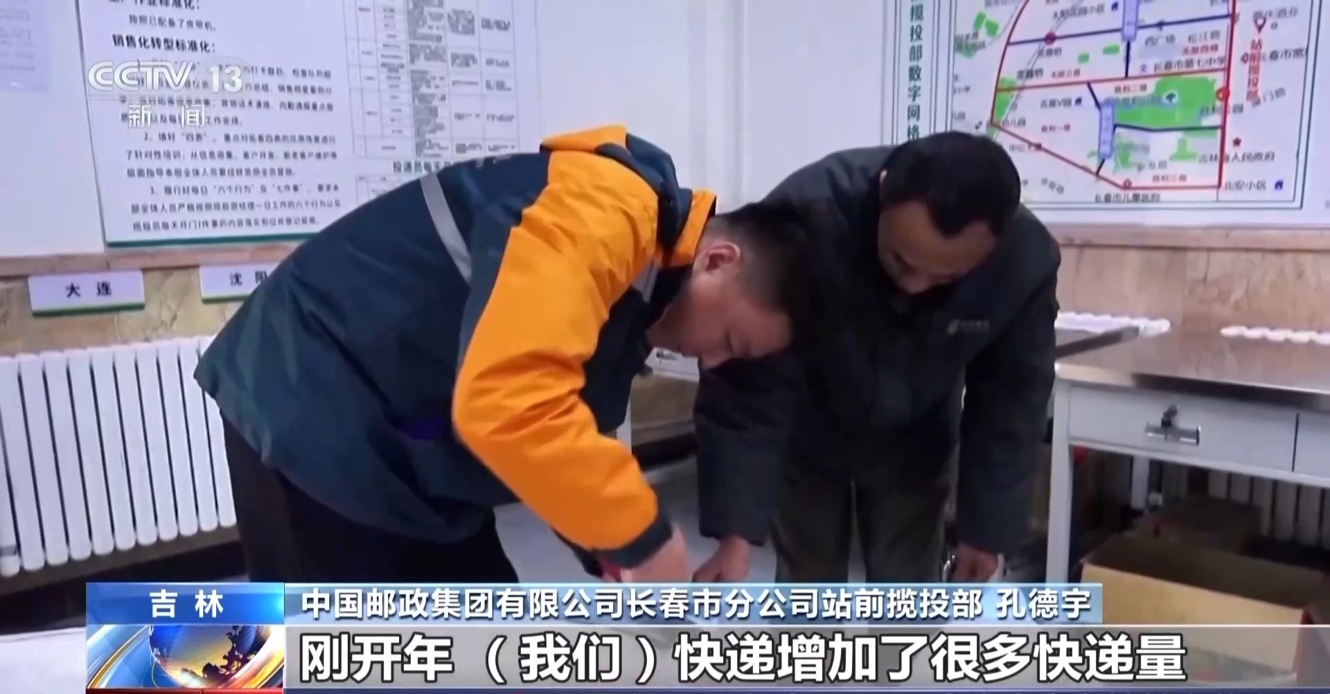 中国邮政集团有限公司长春市分公司站前揽投部 孔德宇:刚开年,我们快递量增加了很多,今天大概来了3200多件,我们也是尽量加班加点干,尽量让用户有一个好的用邮体验。