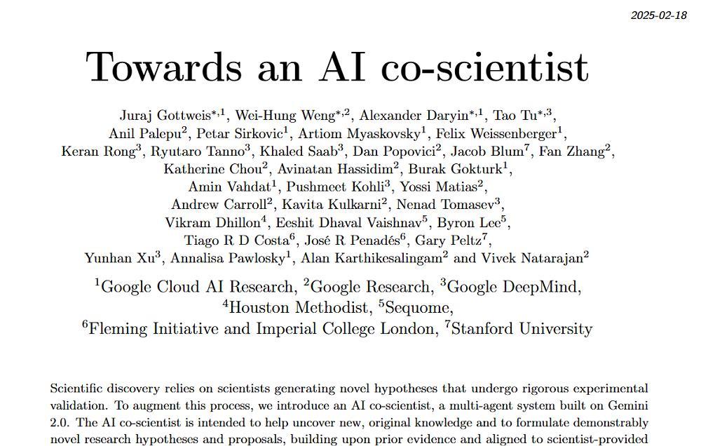 智东西2月20日报道,用48小时破解生物学家苦心钻研10年的“超级细菌”难题,还可免费申请使用,这是谷歌研究院(Google Research)昨日在AI for Science领域发布的最新成果:一个基于Gemini 2.0构建的AI协作科学家。