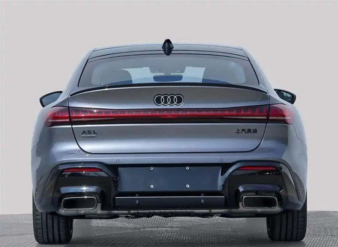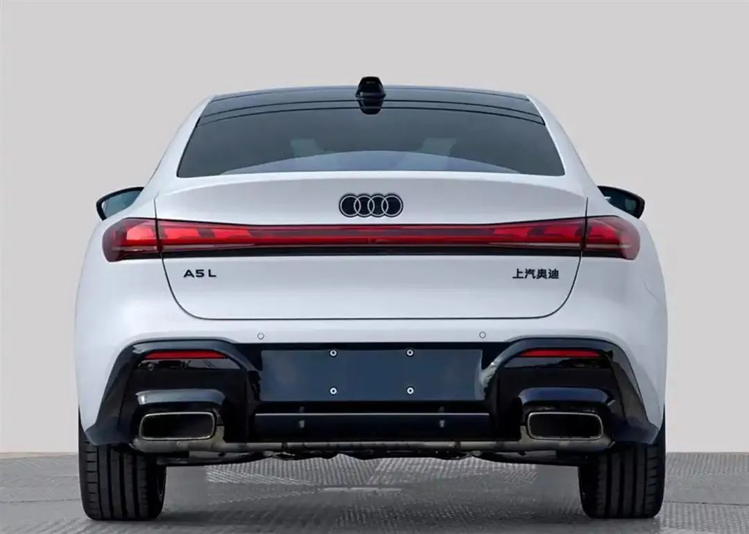 侧面造型中,上汽奥迪A5L的B柱后方下滑更明显,这也使得整个车窗占比更小、后三角窗设计更加犀利,无框车门的设计大概率是没跑了。尾部是很流行的贯穿式尾灯,双边单出排气布局,两侧的扩散器做的挺夸张,牌照架挪到了后杠上,而一汽奥迪A5L则在后备箱盖上。