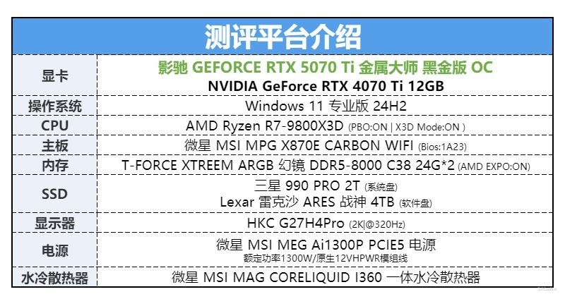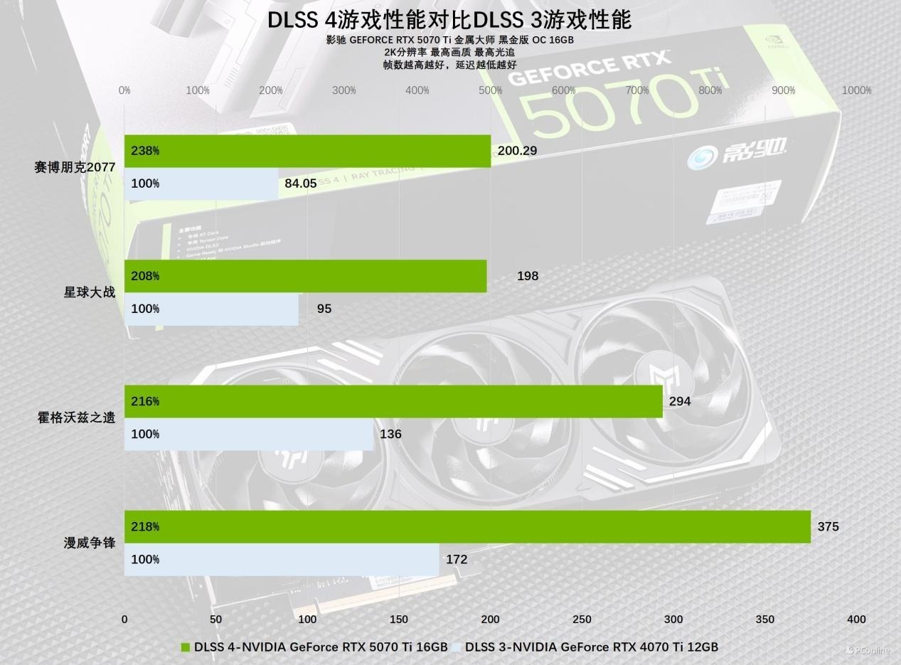 小结:DLSS 4的多帧生成功能无疑显著提升了玩家的游戏体验。相较于前一代RTX 40系列的DLSS 3帧生成功能,DLSS 4再次实现了帧数的显著提升。在相同的画质设置下,影驰RTX 5070 Ti 金属大师OC 16GB的性能提升相当显著,在提及的四款游戏中进行实测,开启DLSS 4后的游戏流畅度几乎是RTX 4070 Ti的两倍!这一成就并非依赖于硬件的简单堆砌,而是凭借“科技与巧妙的技术”实现的。