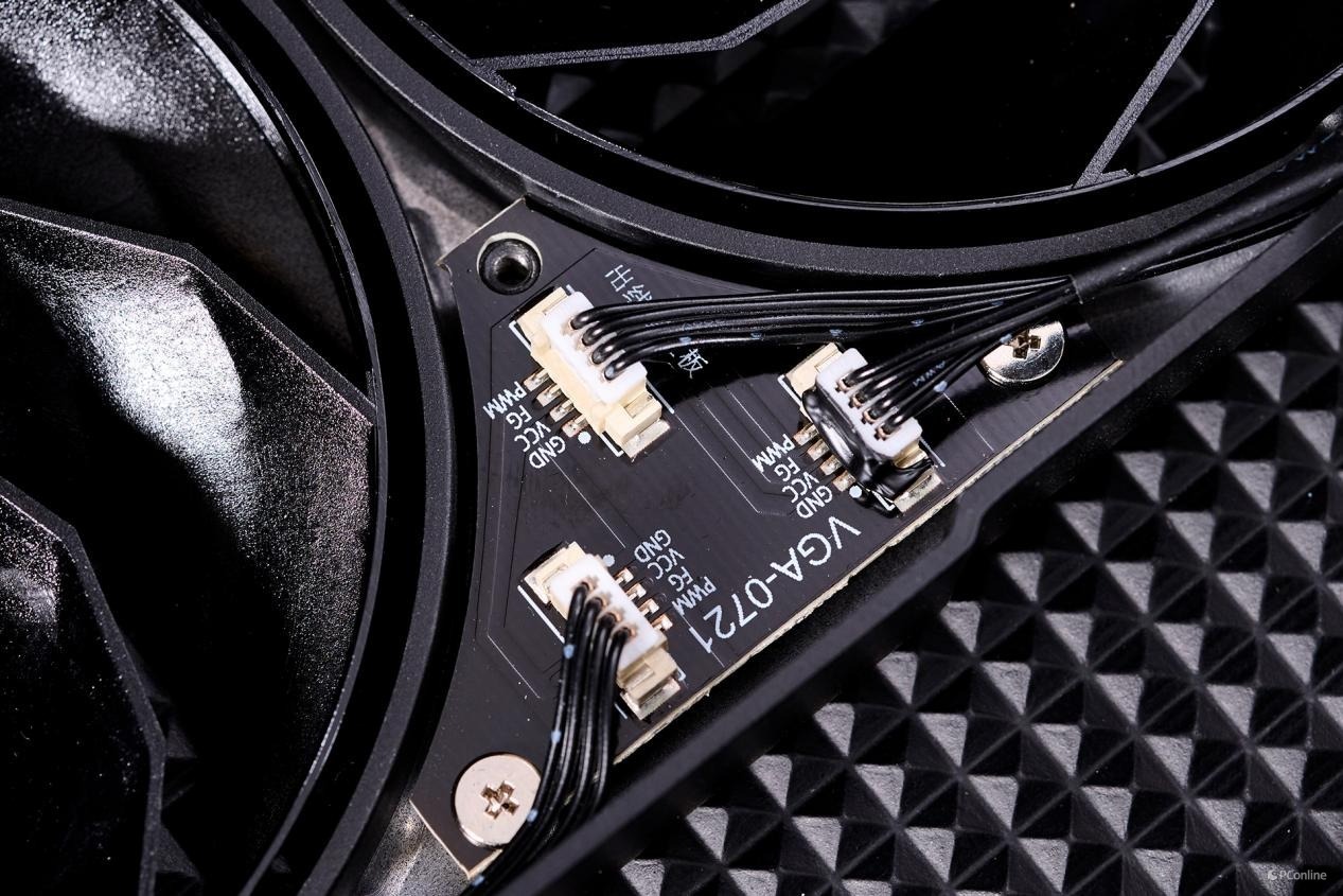 内置的风扇分线HUB小板,三把风扇分为两组,可以通过影驰自家的魔盘XtremeTuner软件进行控制。