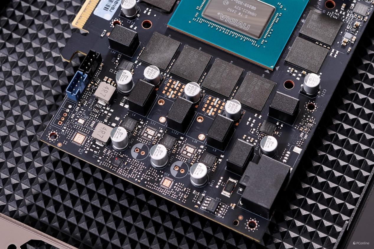 供电电路分别位于显卡两侧,共10+4+3相供电;其中10相NVVDD、3相FBVDD,以及4相MSVDD。