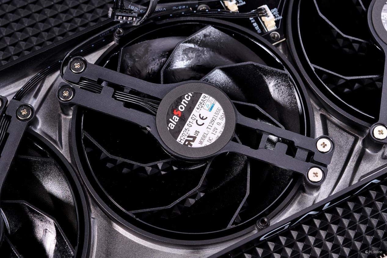 显卡的顶部和底部两侧均配备了大型散热出风口,以促进热量的快速排出。