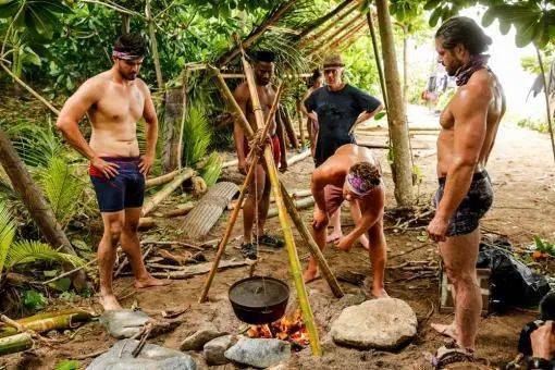 怀特在真人秀现场(中间穿T恤那位)。(图/《幸存者:强弱之争》)