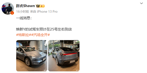 【CNMO科技消息】近日,有汽车博主爆料称,特斯拉焕新Model Y试驾车预计在2月25日左右到店。此前该博主爆料称,现在特斯拉上海工厂开始生产焕新Model Y了,开启产能爬坡模式,以后交付节奏将加快。
