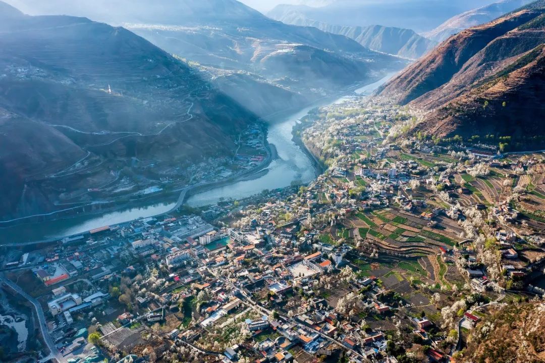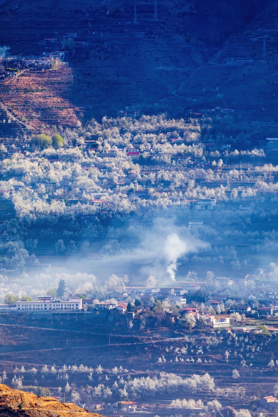 登高远眺,你能看到壮阔的金川峡谷,四下田野阡陌交错,白的梨花、青的麦苗、红的藏寨,恍若《诗经》中“梨花院落溶溶月”的意境穿越时空在此重现。