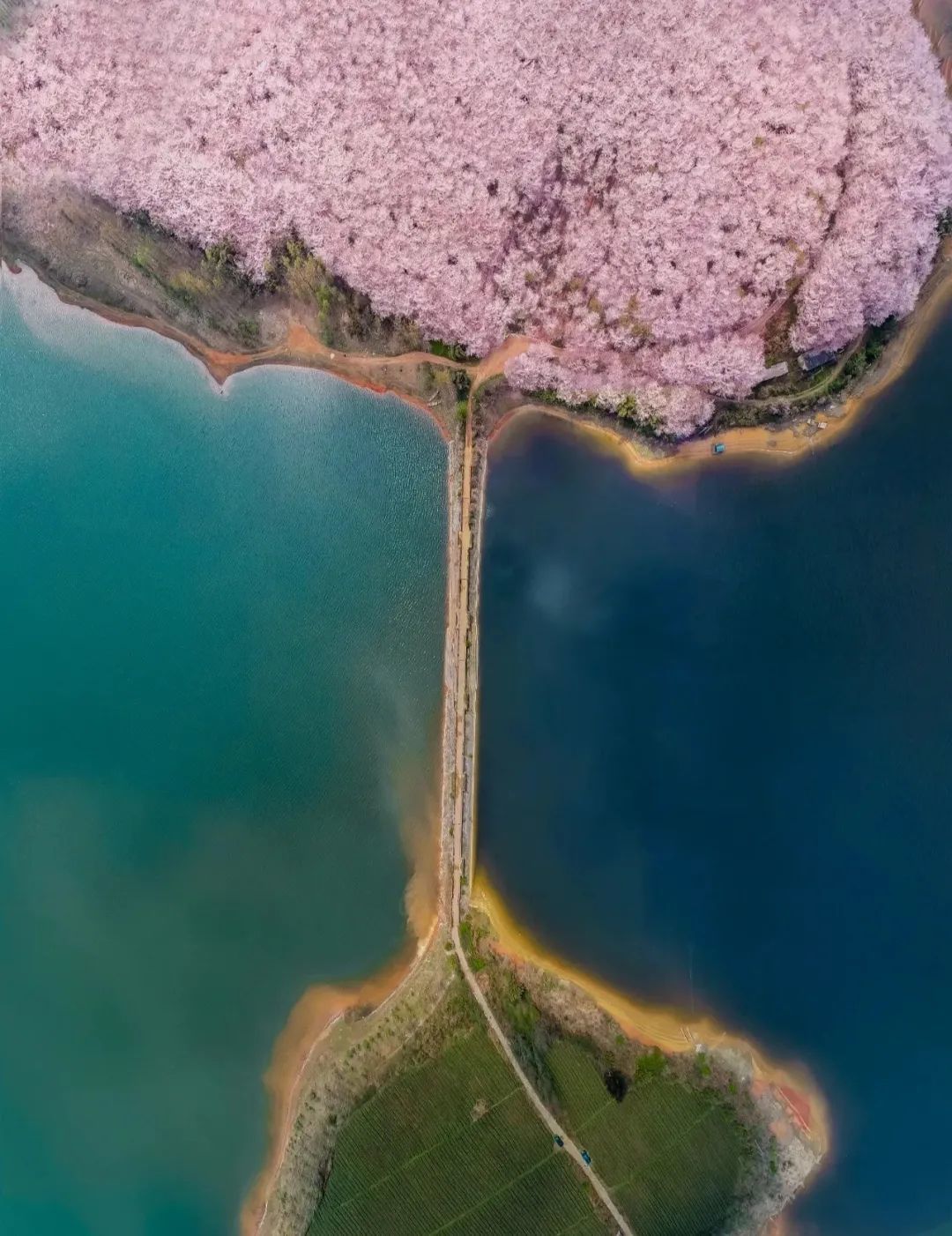 从航拍视角俯瞰,这幅美不胜收的春日画卷惊艳了世界,不仅《美国国家地理》盛赞誉,还让BBC连续三年专程报道并称:它是蓝色星球上最美的樱花园之一!