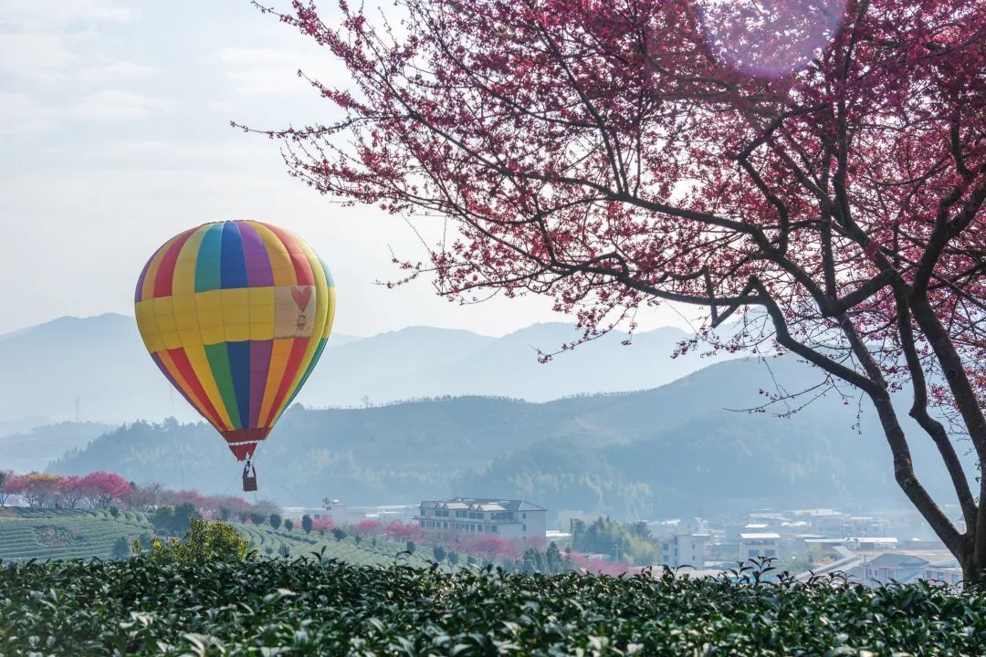 早春时节,永福镇将樱花与茶园的搭配发挥到了极致。