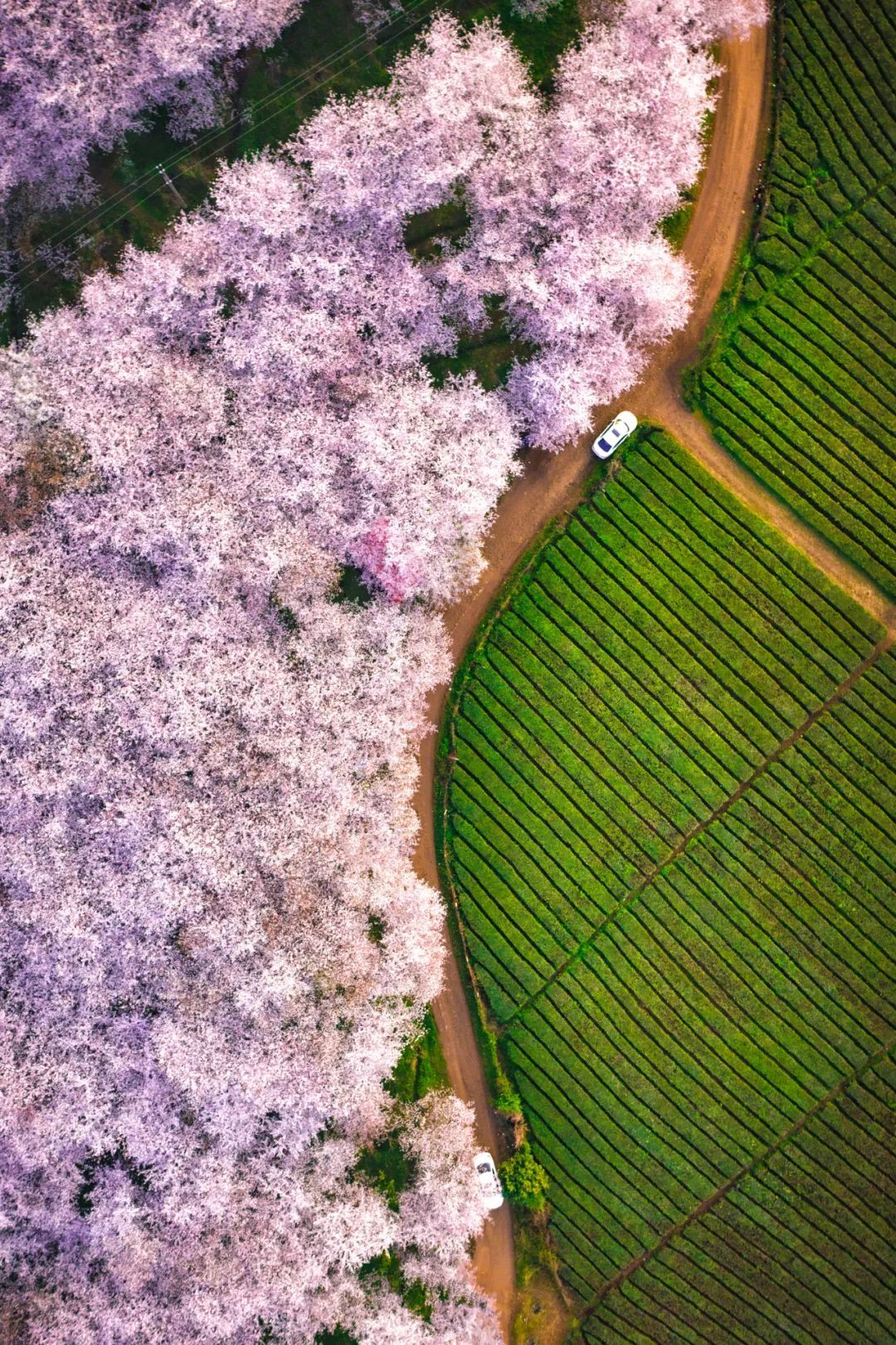 这里拥有2.4万亩的樱花,当70万株樱花集中绽放,一半是粉色的浪漫海洋,一半是清新的抹茶世界。