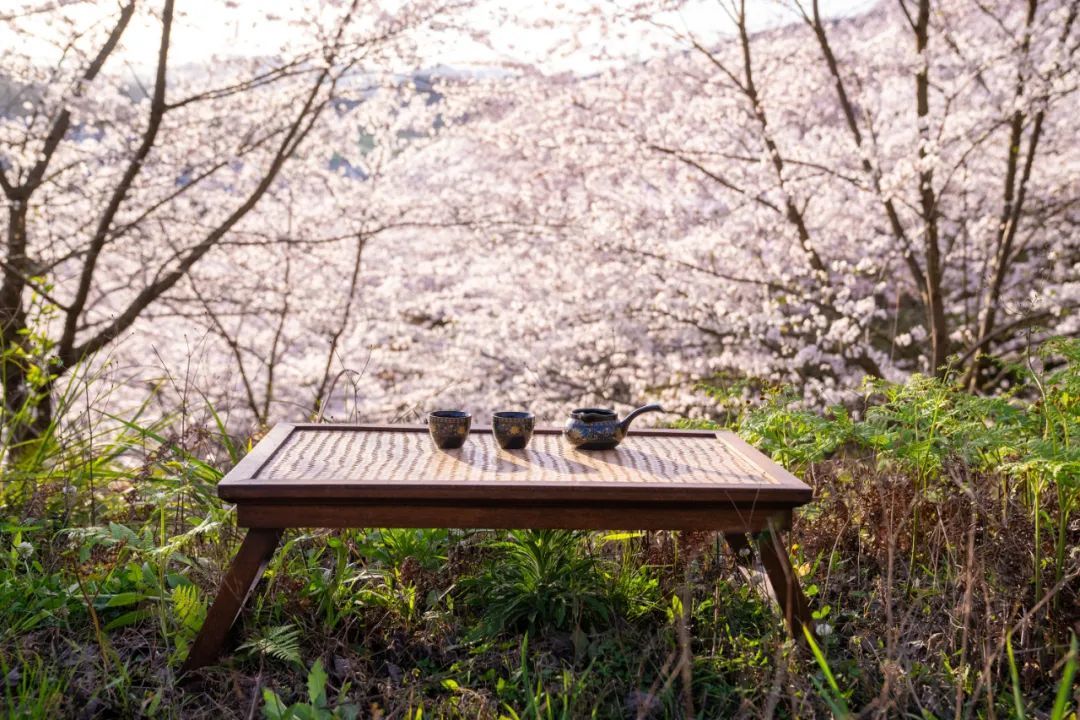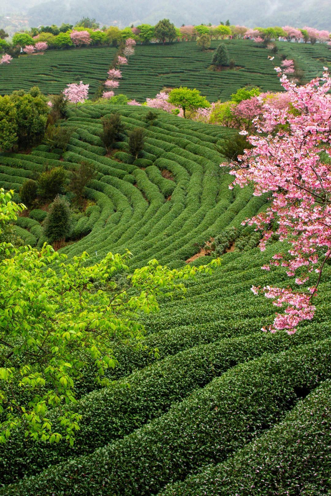 10万余株樱花沿着5万亩茶垄蜿蜒绽放,绯红与雪白的樱花点缀在翠绿的茶树间,形成了独特的“茶樱共生”景观。站在台品樱花茶园的高处,视野最佳,可以一览粉色花带缠绕山间的立体画卷。