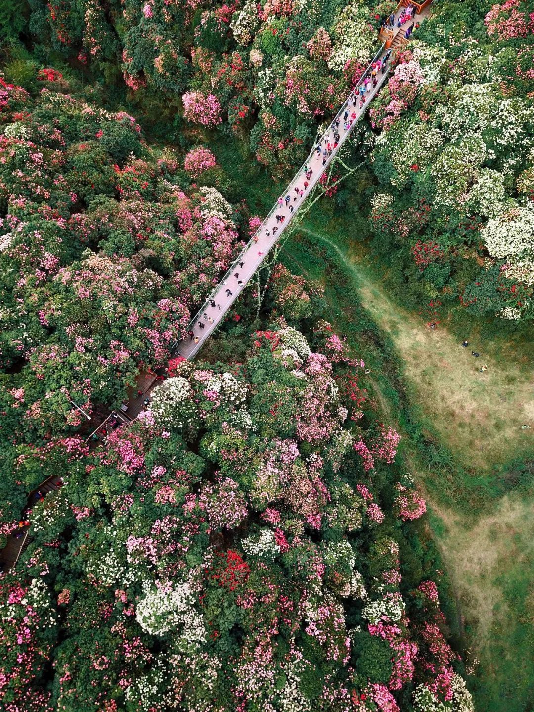 百里杜鹃的核心景区是普底景区和金坡景区,也是赏花的精华所在。旺季时如果时间有限,滚妹首推金坡景区,这里的索玛花桥是俯瞰杜鹃花海的最佳位置,可以将壮阔的花海尽收眼底,绝对是视觉的震撼!