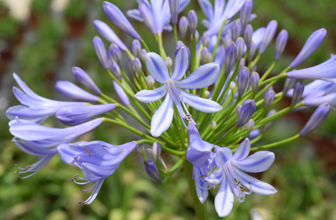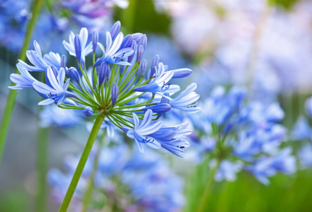 百子莲是非常典型的多年生球根植物,它的花刚冒出来的时候,看起来有点像大葱花,皮实耐养,在我国的有些地方还将它用作绿化植物,比如四川成都等地。在每年的夏秋季节,它们就能开出蓝色、粉色、蓝紫色和白色的花朵。