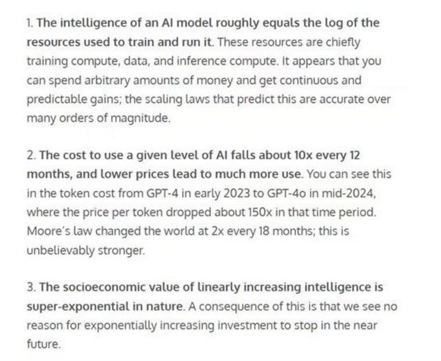 (三)智能的线性增长能带来超指数级的社会经济价值。因此,我们看不到任何理由认为这种指数级增长的投资会在近期停止。