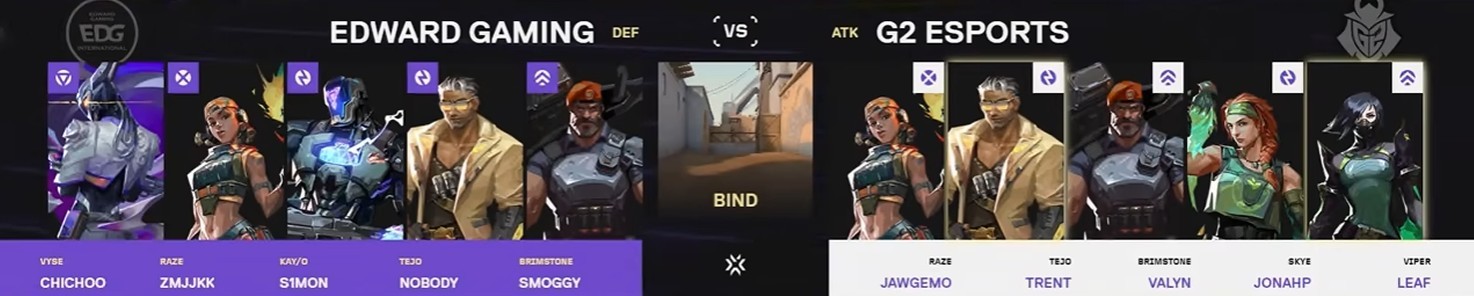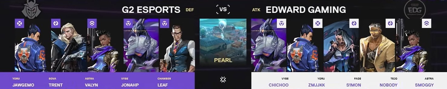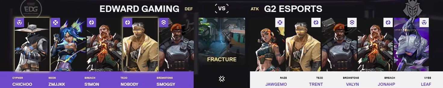 第22回合,G2存钱局提速B区,EDG开启宇宙分裂回防效果不佳,trent和valyn包点游龙打出翻盘,11-11。