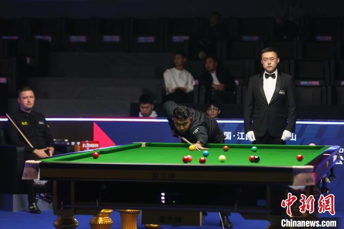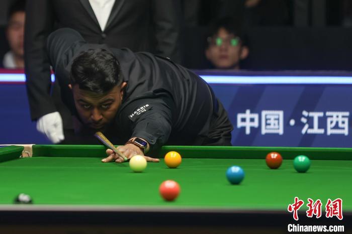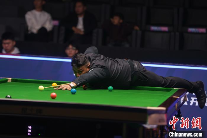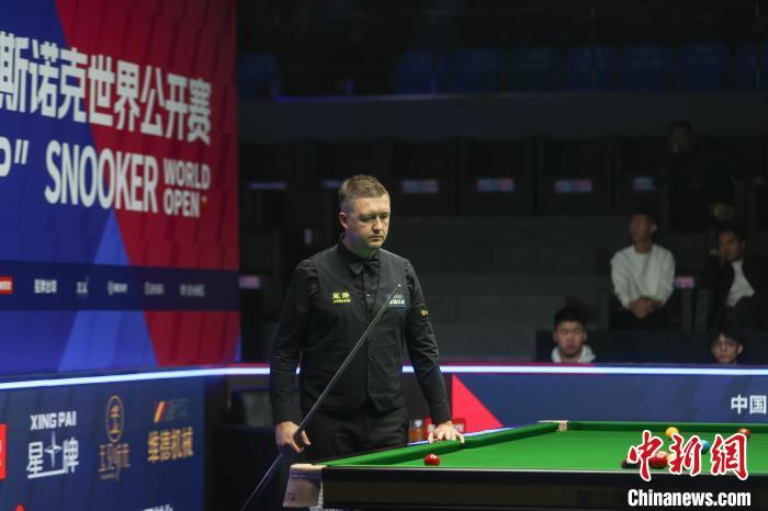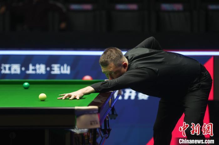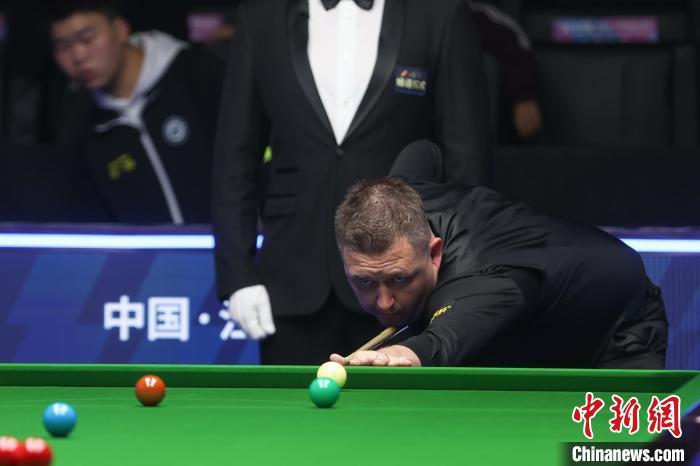 2月23日,江西上饶玉山县,2025斯诺克世界公开赛迎来首轮比赛,现世界排名第二、2024年世界斯诺克锦标赛冠军凯伦·威尔逊以5-2的比分战胜哈马德·米亚,顺利晋级64强。图为凯伦·威尔逊在比赛中。中新社记者 刘力鑫 摄