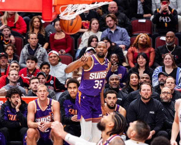 杜兰特出战38分钟,投篮15中9,三分6中3,罚球6中6,拿到27分11板5助1帽,正负值+6。