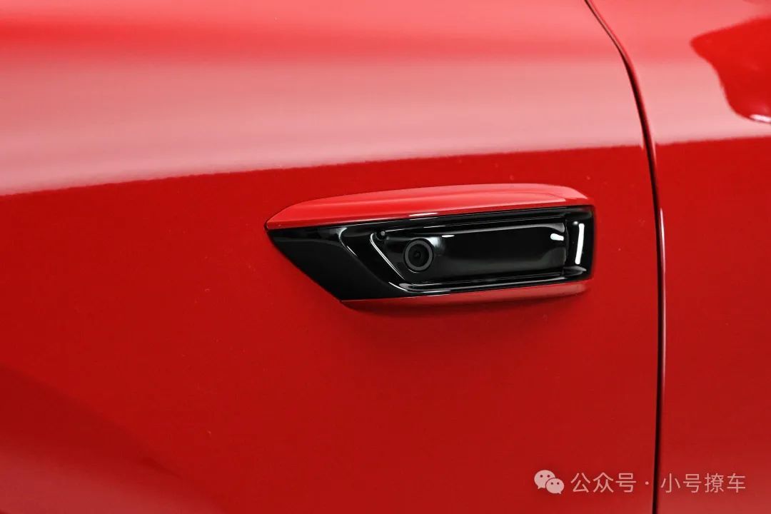 侧面造型方面,车顶采用了溜背式造型,线条感显得比较干练,搭配无框车门以及鲨鱼鳍带来了浓厚的轿跑气息;腰线采用了贯穿式设计,让车身显得修长大气;门把手则是内凹式造型,能够起到降低风阻的作用;轮毂采用的是双五辐式熏黑造型,搭配红色卡钳进一步增强了运动感。