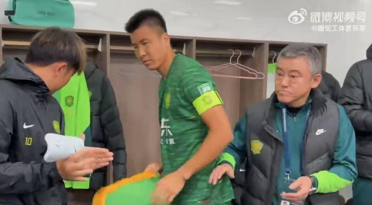 新赛季中超首轮,北京国安客场2-0战胜云南玉昆。赛后有博主在社媒发布了本场赛前国安队更衣室加油喊话视频。视频中,王刚球衣上的赞助商臂章疑似出现了上下颠倒的情况。
