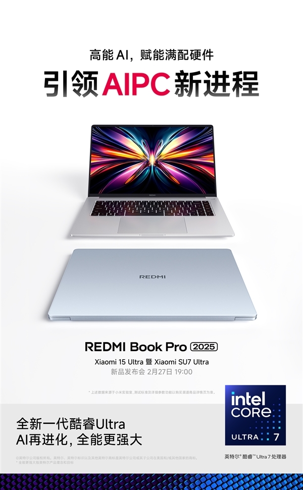 快科技2月24日消息,REDMI Book Pro 16 2025今日官宣定档,将于2月27日正式发布。