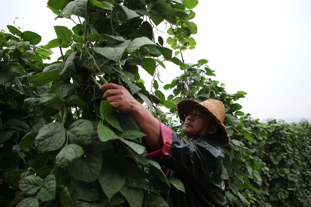 农民在采摘四季豆。新华社发(杨俊鹏 摄)