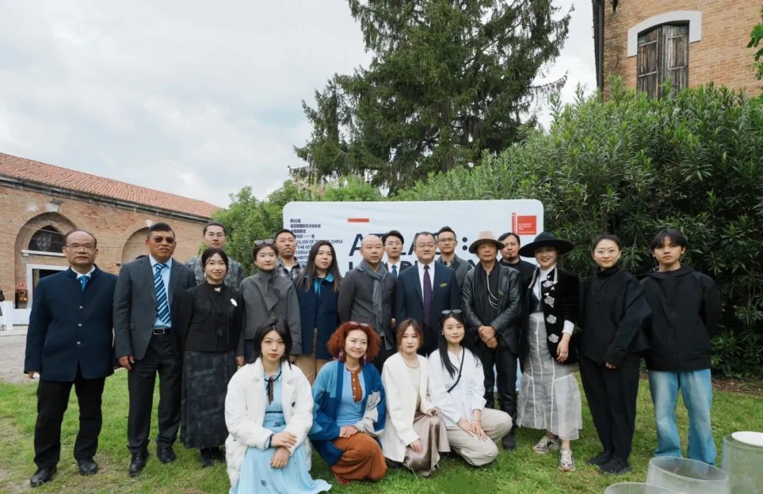 ▲ 时任浙江大学杜江峰校长与第60届威尼斯双年展中国馆策展团队合影
