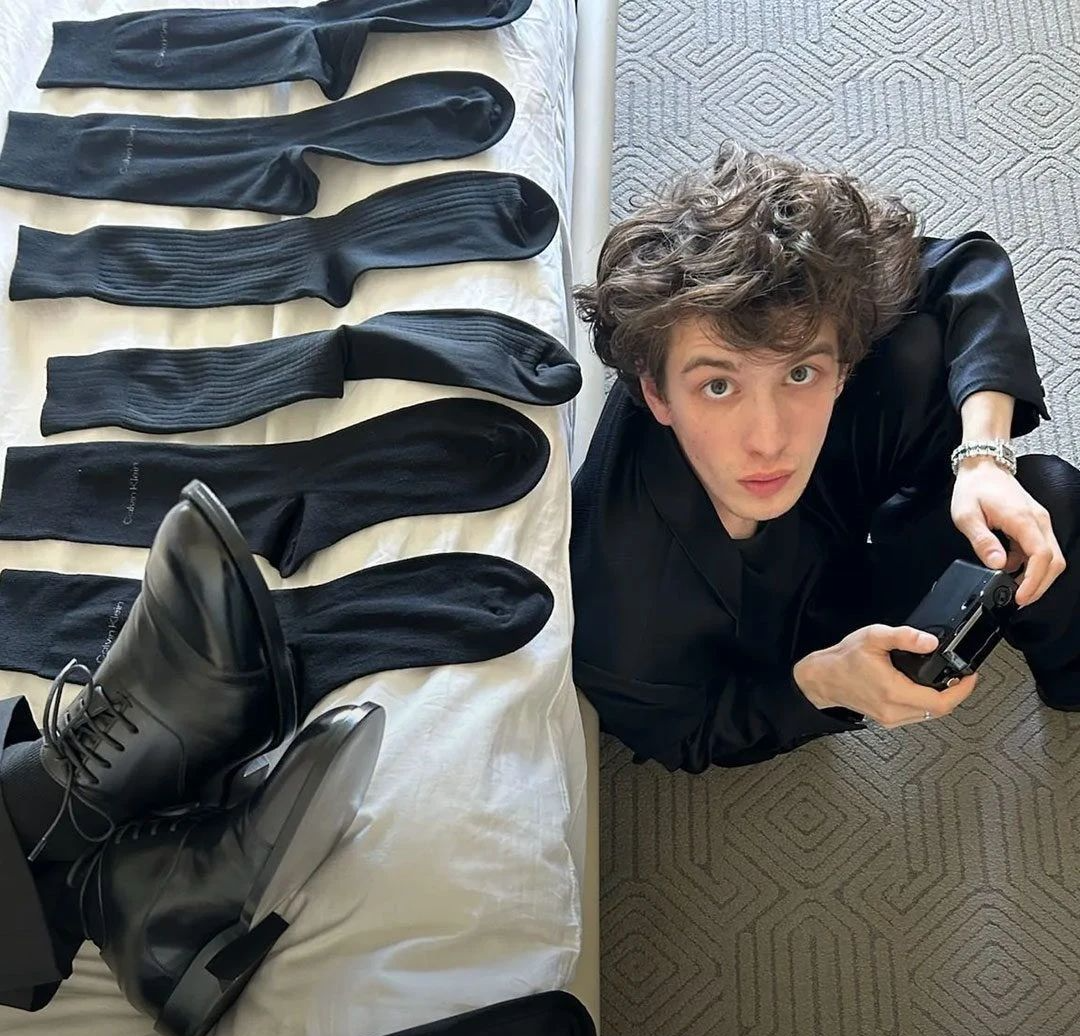 最近《VOGUE》杂志发布一个与他相关的专题,记录了他在参加美国演员协会奖前的准备工作。惊喜地发现,Марк Эйдельштейн 其实并不喜欢白袜,他准备的袜子全是黑色的。