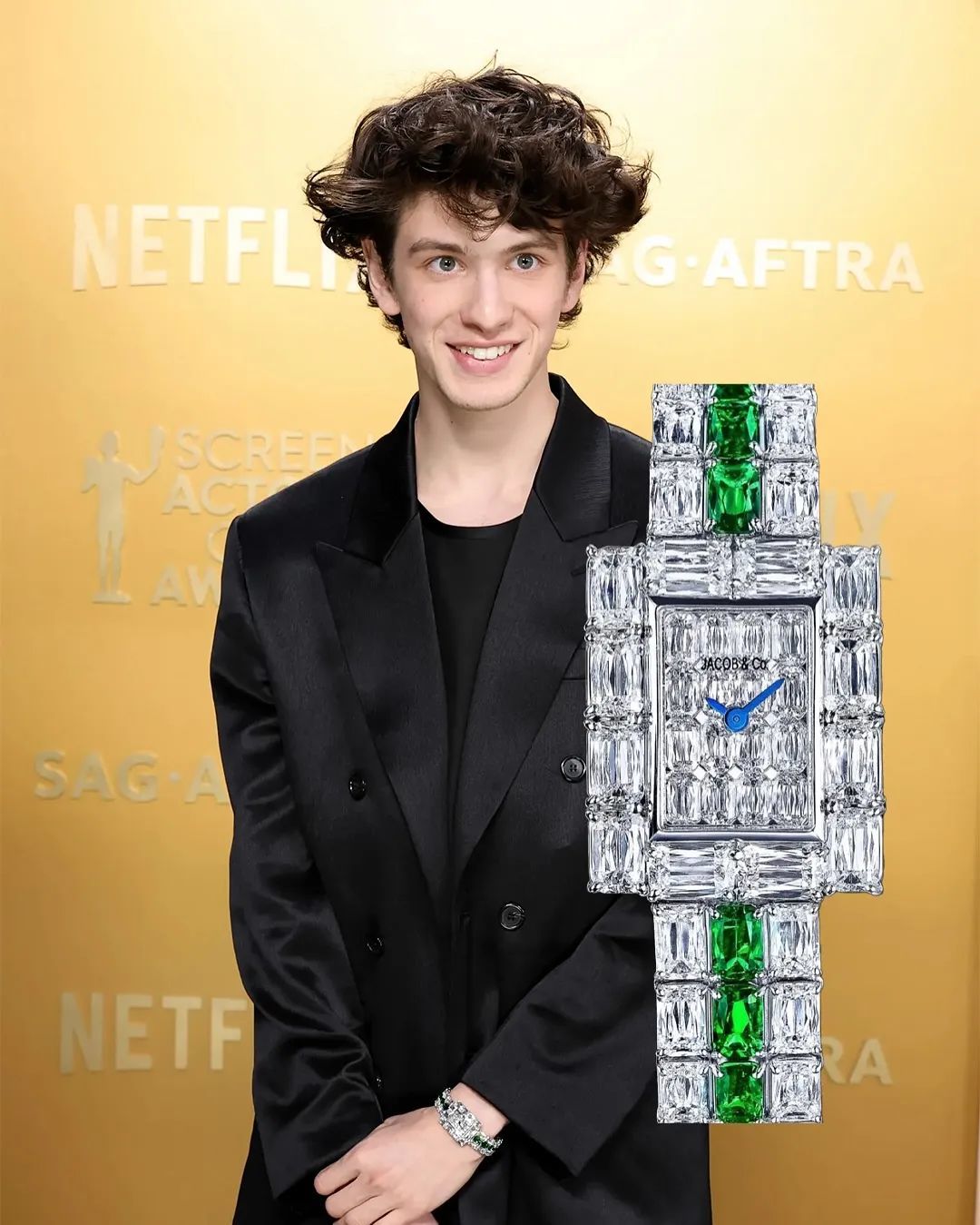 他这次红毯之所以受到关注是因为 Jacob & Co 珠宝公司赞助了他的服装和腕表,他戴的全钻腕表价格为140万美元,折合人民币1000万元。他的手表是当天所有男明星里最昂贵的。