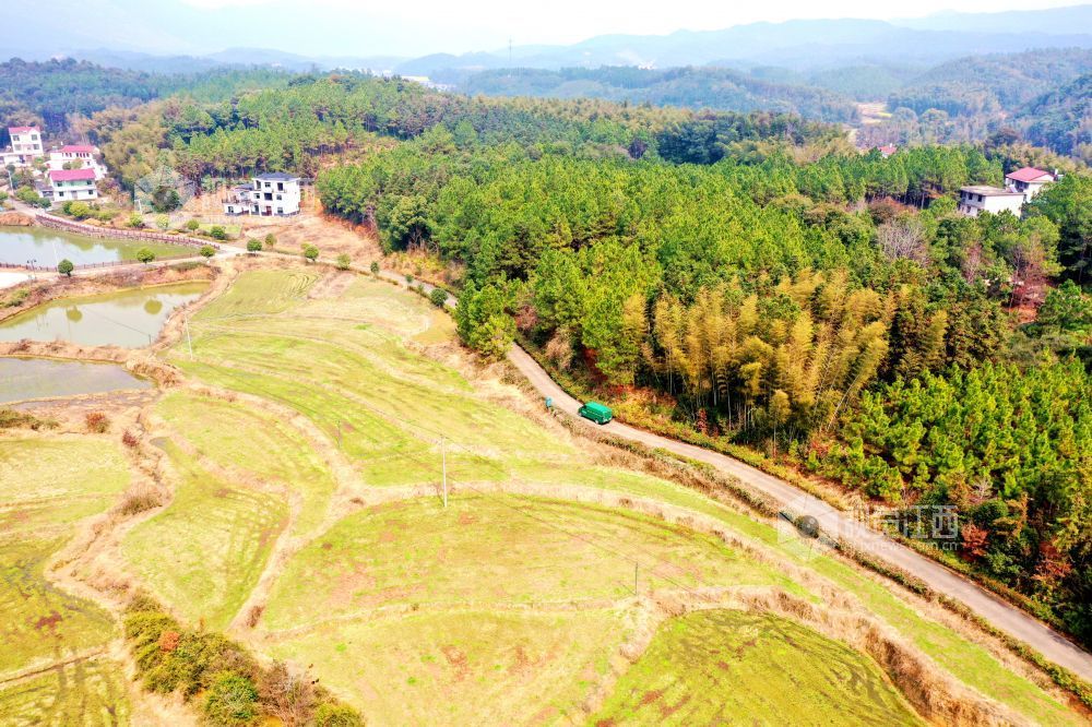 2025年2月24日,江西省吉安市峡江县仁和镇官山村,车辆行驶在四好农村公路上,与色彩斑斓的树林、田园、民居相映成景,美如画卷。