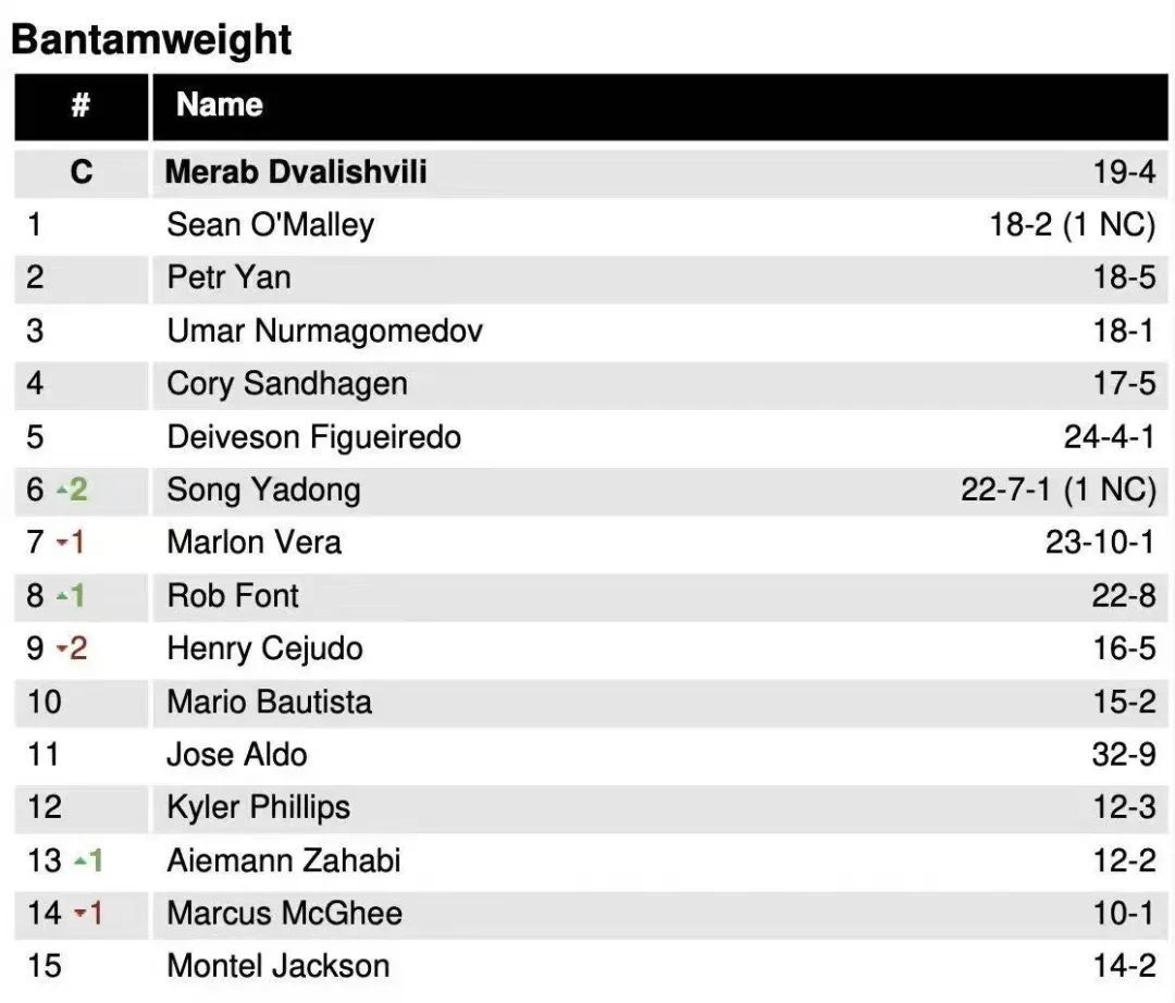 众所周知,UFC的排名规则主要由媒体委员会投票决定,不同量级的选手分别投票,排名则是依据选手的比赛表现以及对手质量等因素,并不是简单的取代,所以宋亚东排名上升至第六也显示出官方以及媒体委员会对其实力的认可和肯定。