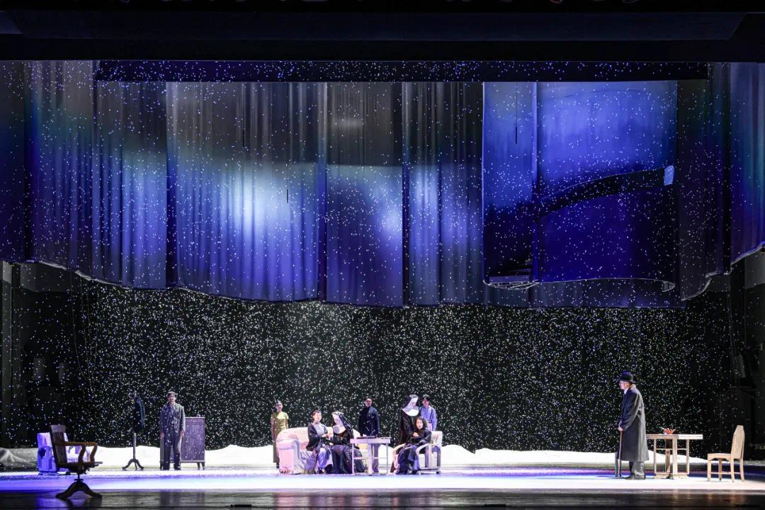 李六乙导演的话剧《雷雨》落幕时,巴赫的圣乐《B小调弥撒曲》伴随着《雅歌》与《启示录》的颂咏声,重叠交替,形成复调。剧中人赞美、祈求,走进渐趋开阔的舞台深处,淡远于天然哀静的漫天飞雪……