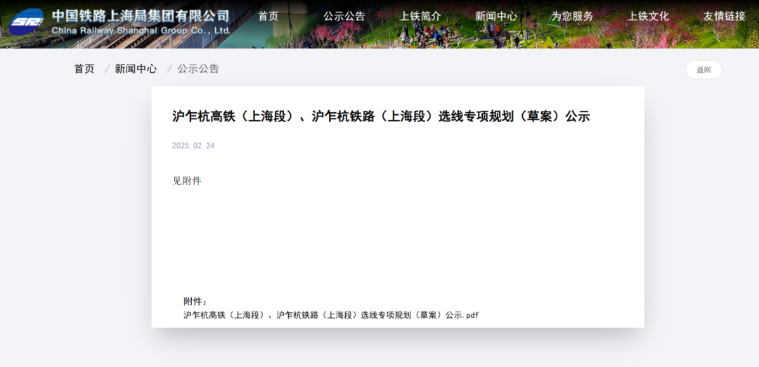 《沪乍杭高铁(上海段)、沪乍杭铁路(上海段)选线专项规划(草案)公示》已于近日发布。这意味着,沪乍杭高铁及货线上海段走向及设站方案基本确定,进入可研批复关键阶段。