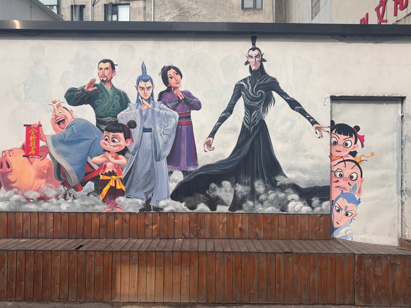 潘老师称,自从《哪吒2》墙绘完成,有一百多个游客参观打卡,其中有不少小孩和家长。“这让我觉得《哪吒2》的电影缩小了老一辈和年轻一辈之间的代沟。”