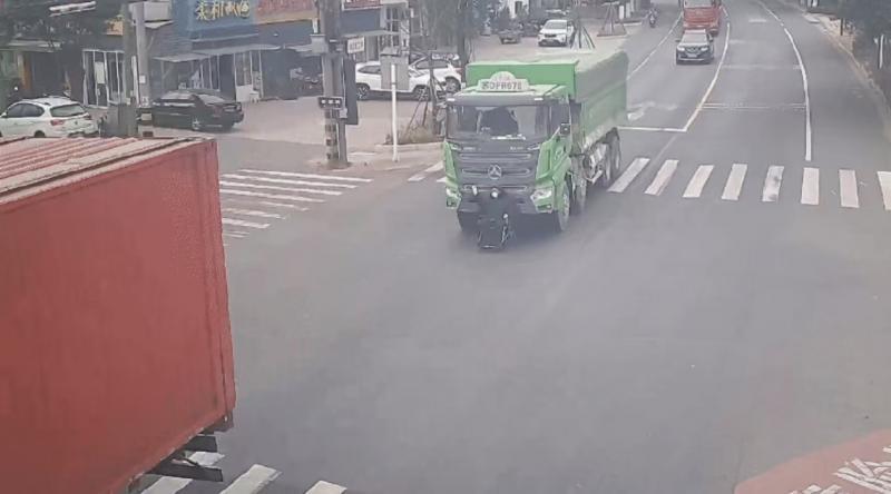 2月20日上午10时许,在常州经开区横山桥镇戚月线新董路口上演了惊险一幕。一位八旬老人驾驶电动轮椅试图横穿马路时进入排队等红灯的大车前方。这时,前方路口亮起绿灯,一排大车启动前行,因为视线盲区,一辆缓步启动的绿色大货车将老人连同轮椅一路推行数百米。