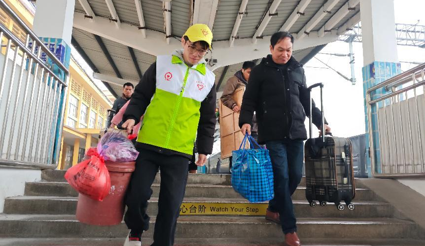 春运期间,为切实保障旅客安全、便捷、有序出行,贵溪火车站的团员青年志愿者积极响应,投身于志愿服务活动中,他们用青春的热情与担当,为旅客的返程之路增添温暖。