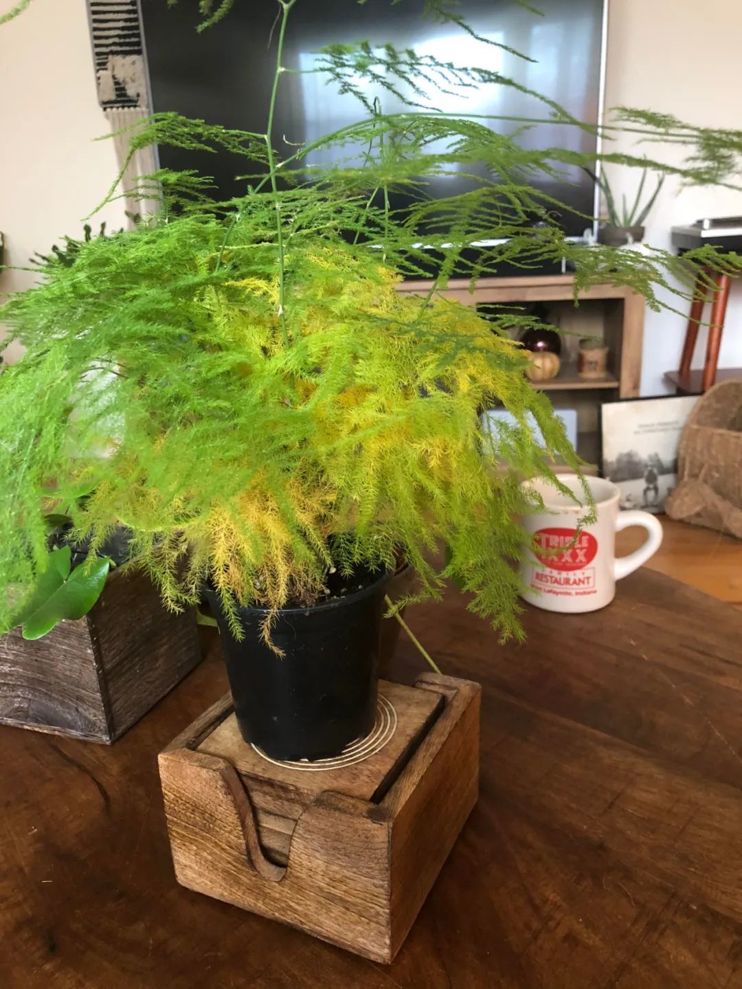 文竹的叶子浓密,在养护的过程中一定要避免暴晒,光照太强会导致叶子晒伤,叶片会变干变黄,最终会引起叶子大面积发黄干枯(空气过度干燥也会导致叶黄)。