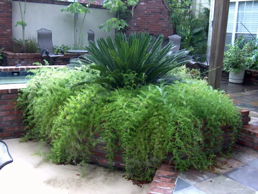 上面是花坛上的天门冬和苏铁