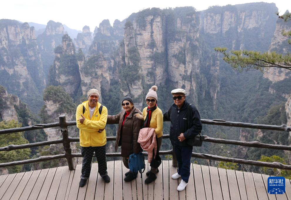 2025年2月15日,泰国游客在张家界国家森林公园袁家界景区游玩。
