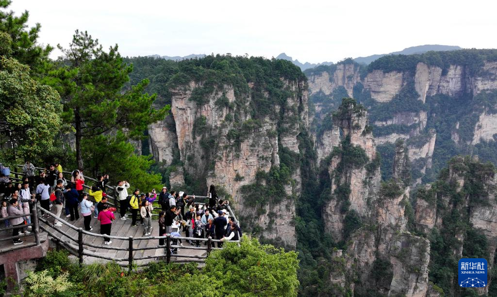 2024年10月3日,游客在张家界国家森林公园袁家界景区游览。