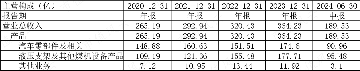郑煤机(601717.SH)是一家煤机研发制造和汽车零部件制造双主业融合发展的企业,收入基本各占一半。
