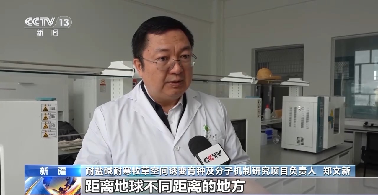 耐盐碱耐寒牧草空间诱变育种及分子机制研究项目负责人 郑文新:把种子带到太空的不同地方,距离地球不同距离的地方,有可能会出现一些不同的变化,希望通过太空育种,能够把种子的耐盐碱、耐寒、耐旱、耐热,很多特性能够创造出来。