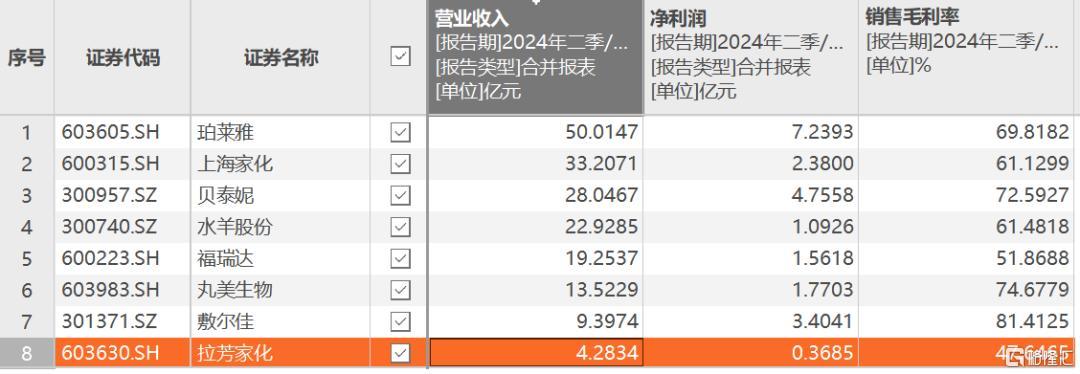 而且,索芙特的毛利率也远低于上海家化、拉芳家化等同行。2024年上半年,索芙特的毛利率为31.5%,而同期上海家化、拉芳家化的销售毛利率分别在61%、47%左右。