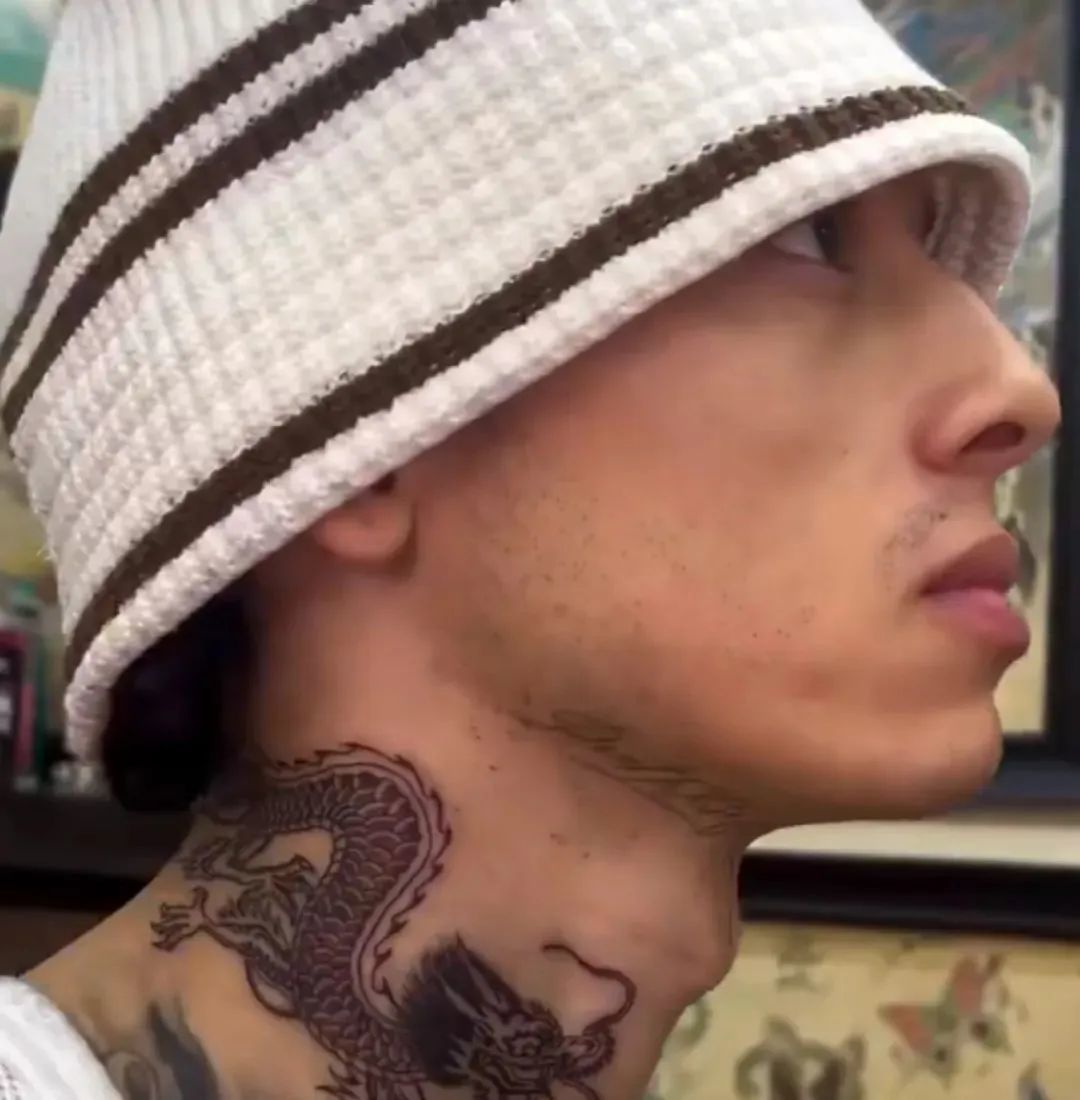 更特别的是,Central Cee通过纹身的方式表达了对中国血统的致敬,他在脸上纹了“改善”两个汉字,来中国演出时,又在脖子处纹了一条中国龙。