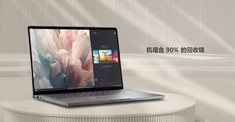 颜值方面,镁合金机壳的采用使得新品具备了极致的轻薄与便携性,而在机箱中采用90%的再生镁带来了优雅、轻盈和持久的体验。无论是13寸还是14寸,它们都是Pro产品组合中最薄、最轻的一款,起重量仅为2.36磅。
