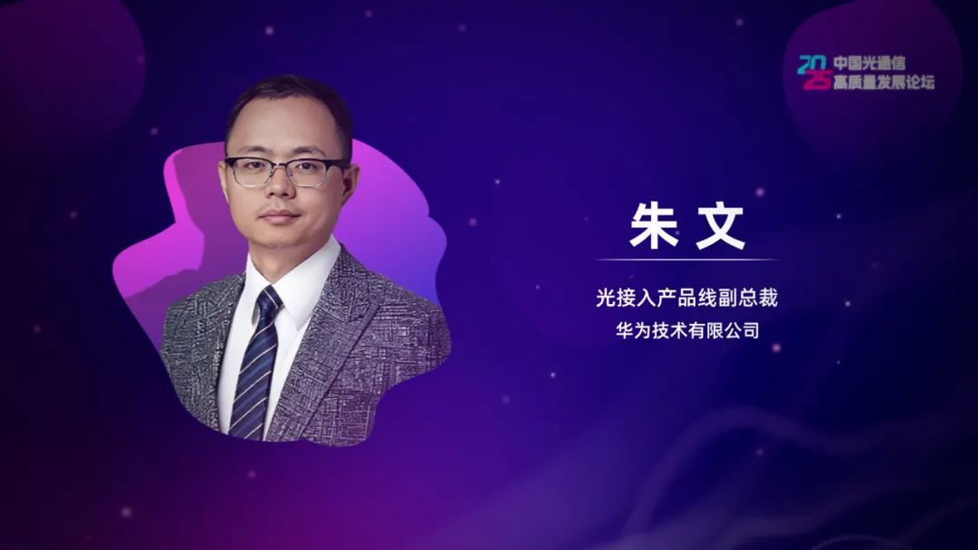 华为光接入产品线副总裁朱文应邀参加,并作了题为《华为FTTR-B点亮中小微企业数字化转型》的主题发言。